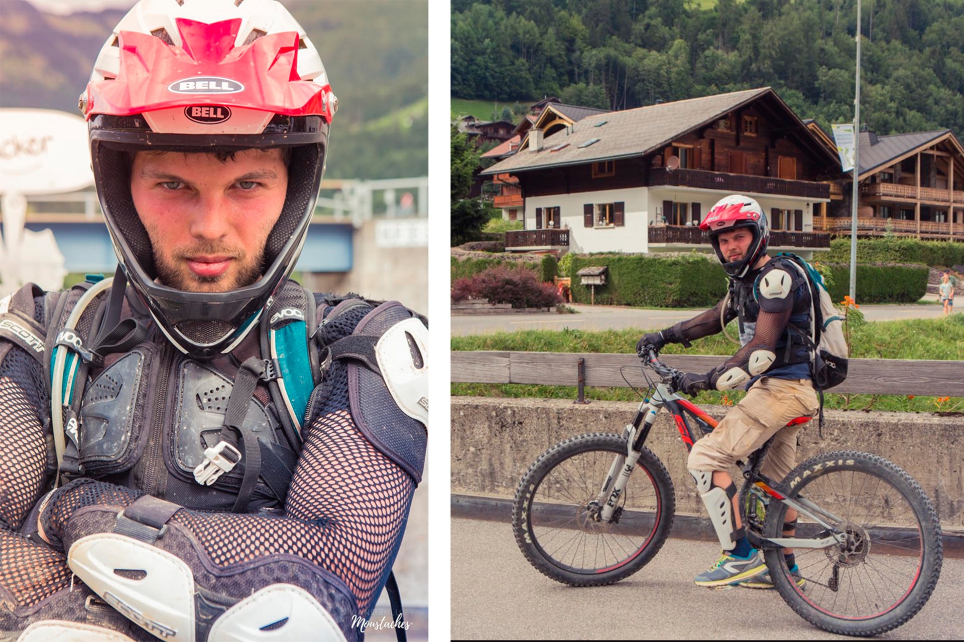 De retour de l’accro-branche, Hugues, en manque d’adrénaline, loue un VTT pour descendre les pistes noires que nous n’avions pas faites. Je le retrouve devant le Petit Baroudeur transpirant, couvert de boue et tout rouge, mais tellement heureux !