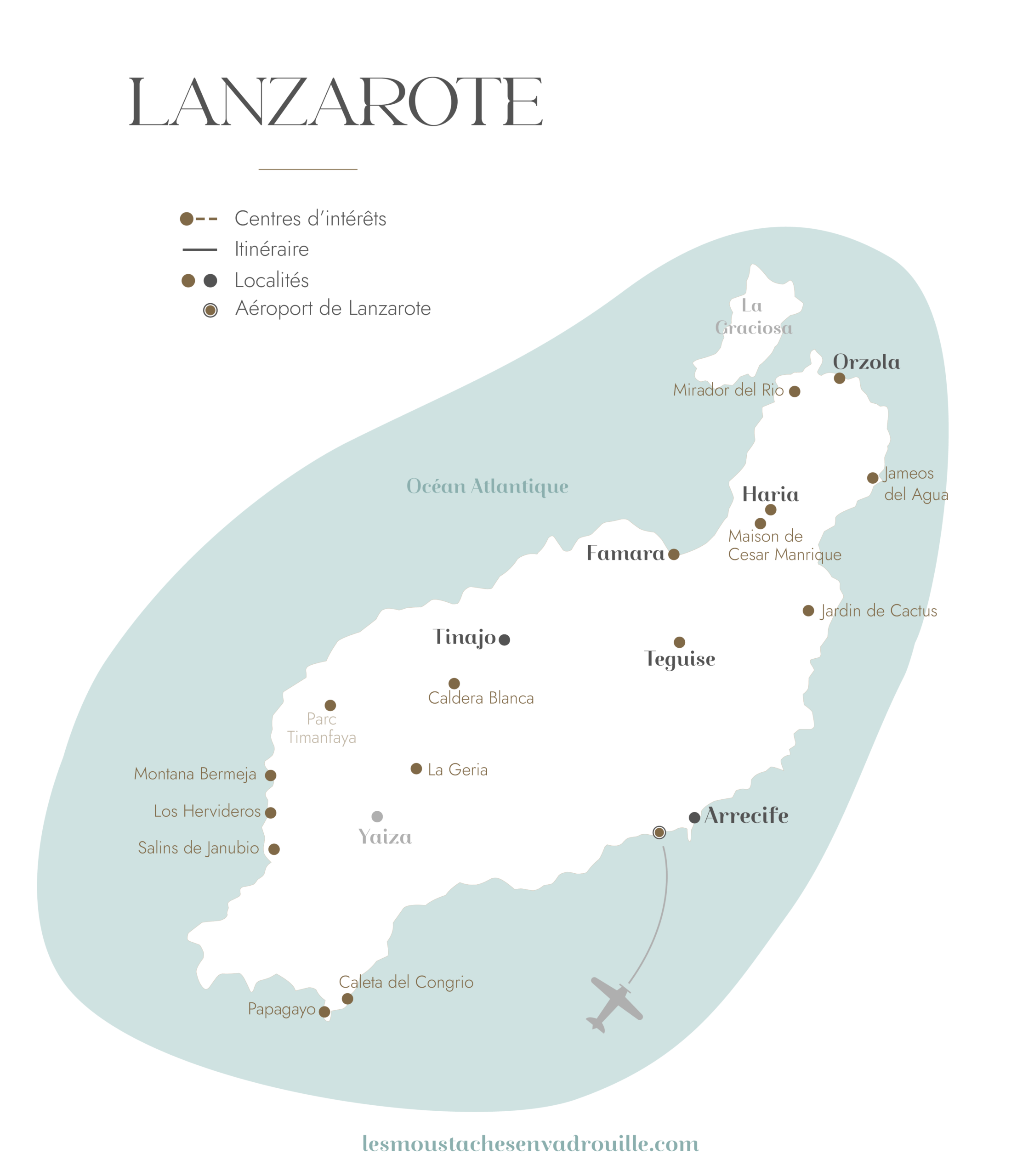 Jour 01 | Le village de Tinajo et la vallée de La Géria Jour 02 | Playa Papagayo, Salinas de Janubio et los Hervideros Jour 03 | Les volcans du parc Timanfaya Jour 04 | Famara, Haria, Orzola et le Mirador del Rio Jour 05 | Randonnée sur le volcan Caldera Blanca Jour 06 | Visite du Jardin de Cactus et départ