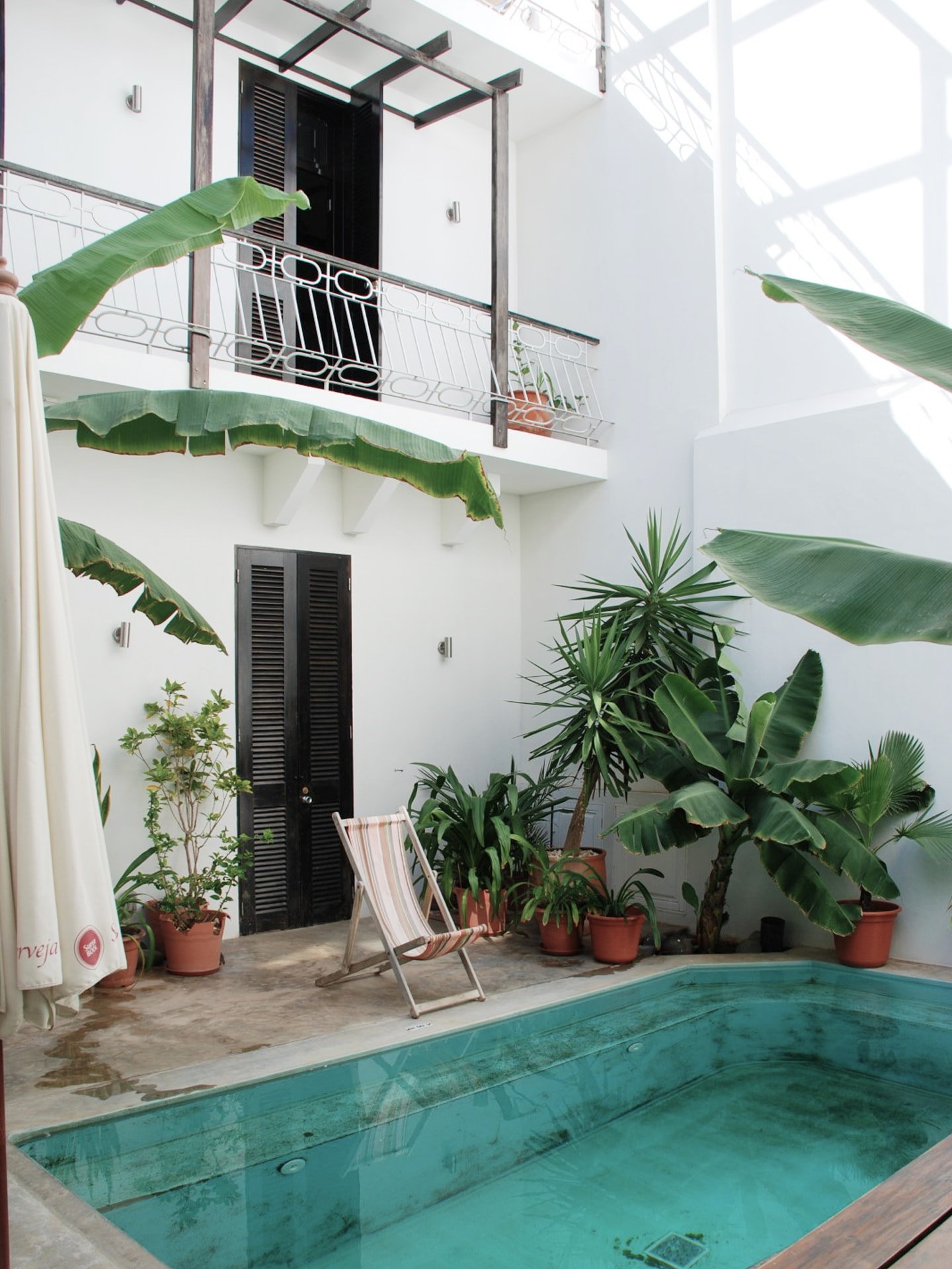 Ses 9 chambres, situées aux étages conservant tout le charme des maisons coloniales : lit à baldaquins ébène se marie à la perfection avec le blanc virginal des murs, et le bleu sourd des faïences de la salle de bains. Les persiennes profèrent une intimité tout en laissant apercevoir la terrasse qui héberge la piscine dans un écrin de verdure exotique.
